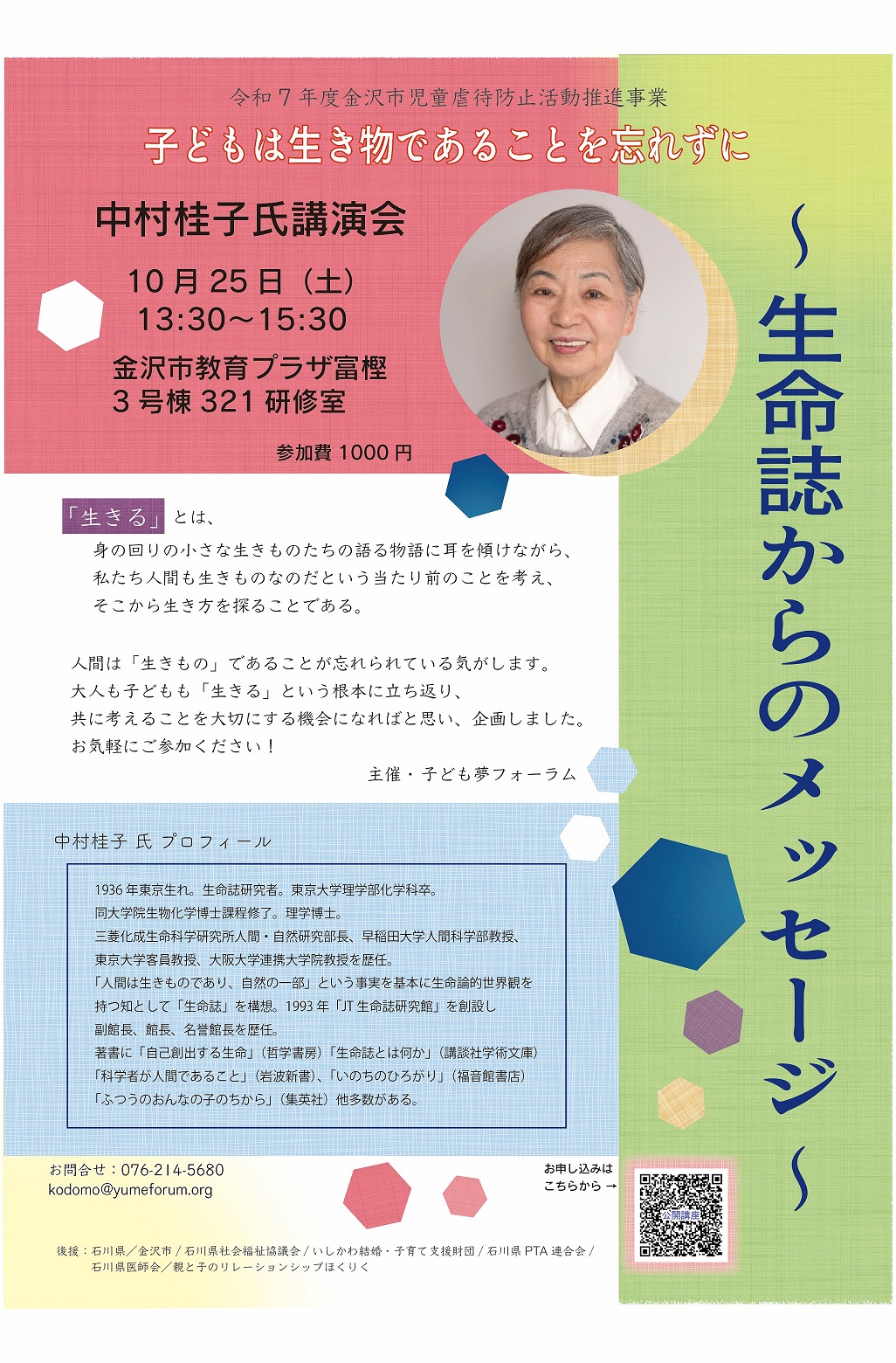 金沢市児童虐待防止活動推進事業講演会『子どもは生き物であることを忘れずに』