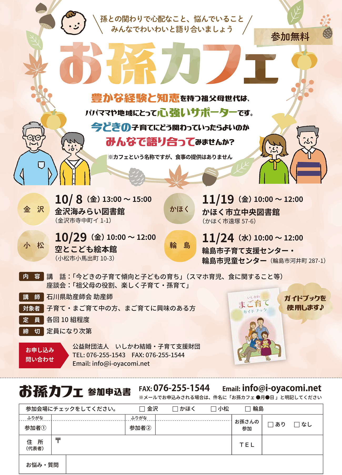 以下のお孫カフェ参加申込書に必要事項をご記入の上、FAXにてお申込みください。